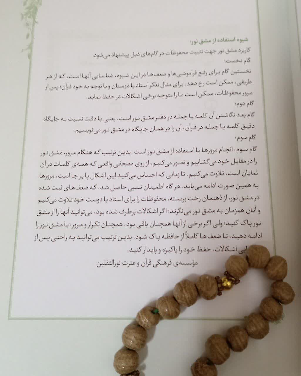 دفتر مشق نور همراهی مؤثر برای حافظان قرآن کریم است؛